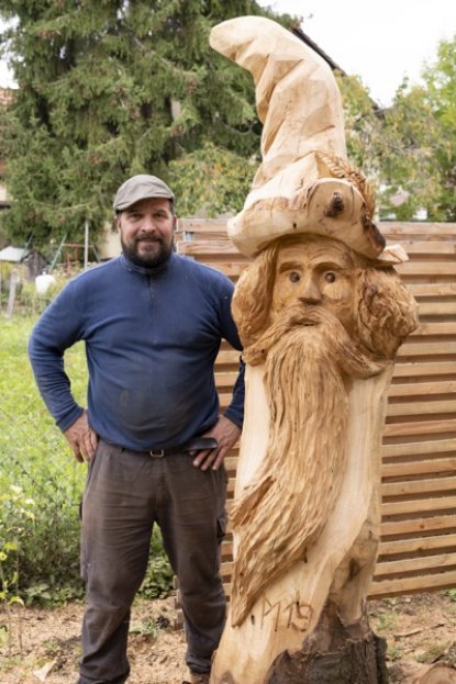 Seit über einem Vierteljahrhundert bringe ich beim Schnitzen die Seele des Holzes zum Vorschein. Meine Leidenschaft für die Holzschnitzerei begann bereits in meiner Kindheit und fand nach meiner Zimmermannslehre und dem Bau meines eigenen Holzhauses einen neuen Höhepunkt, als ich einen stattlichen Holzbären schnitzte, der nun stolz davor Wache hält. Dieser Moment markierte den Beginn meiner Reise in die Welt der kreativen Holzschnitzerei.